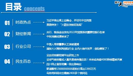 每日新闻速递 2022年9月14日 星期三 目录 时政热点 财经新闻 行业公司 民生百态 习近平将出席上合峰会,并访问中亚两国 美国突发!“火箭在发射后坠毁” 央行、银保监会发布2022年我国系统重要性银行名单 中秋消费成绩单来了 中国人寿原董事长王滨被逮捕 通胀大火烧到再保险行业 业内大佬齐发声:保险费涨了! 全自动核酸检测平台获批上市 全球气候变暖成人畜共患病传播主因!未来或有超4000种病毒被共享 四川终止省级地震一级应急响应 联通靓号15666666666起拍价高达1366万元 乌称用网络攻击瘫痪2400多个俄网站 时政热点 习近平将出席上合峰会,并访问中亚两国 2022-09-12 08:00 来源:澎湃新闻 外交部发言人华春莹宣布:9月14日至16日,国家主席习近平将出席在撒马尔罕举行的上海合作组织成员国元首理事会第二十二次会议,并应哈萨克斯坦共和国总统托卡耶夫、乌兹别克斯坦共和国总统米尔济约耶夫邀请对两国进行国事访问。 美国突发!“火箭在发射后坠毁” 2022-09-13 12:06 来源:环球网 美国蓝色起源公司的“新谢泼德”飞行器12日进行不载人太空试飞,火箭在发射后出现故障并坠毁,没有造成人员伤亡。