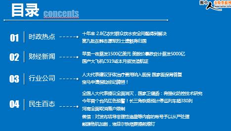 每日新闻速递 2022年9月15日 星期四 目录 时政热点 财经新闻 行业公司 民生百态 十年来 2.8亿农村群众饮水安全问题得到解决 第九批在韩志愿军烈士遗骸将归国 苹果一夜蒸发1500亿美元 美股价暴跌合计蒸发5000亿 国产大飞机C919或本月颁发适航证 人大代表建议牙体治疗费用纳入医保 国家医保局答复 宝马申请保险经纪牌照! 全国人大代表提议全面消灭,国家卫健委:将强化防控技术研究 今年首个台风红色预警!长三角铁路预计停运列车超380列 河南全面取消落户限制 微信:对发布诱导非理性追星等内容的帐号予以从严处理 能源危机加剧,埃菲尔铁塔要提前熄灯 时政热点 十年来 2.8亿农村群众饮水安全问题得到解决 2022-09-13 08:00 来源:新华社 中共中央宣传部9月13日举行“中国这十年”系列主题新闻发布会,介绍党的十八大以来水利发展成就。水利部部长李国英介绍,十年来,农村饮水安全问题实现历史性解决,全面解决了1710万建档立卡贫困人口饮水安全问题,共解决2.8亿农村群众饮水安全问题。 第九批在韩志愿军烈士遗骸将归国 2022-09-14 12:06 来源:北青网 央视网消息:根据中韩双方达成的共识,第九批在韩志愿军烈士遗骸将于9月15日在韩国举行装殓仪式,16日举行交接仪式。今天(9月14日)上午,空军一架运-20飞机从华北某机场起飞,启程飞往韩国,执行此次接迎任务。 今天上午,执行接迎第九批志愿军烈士遗骸回国任务的空军运-20飞机已经起飞,将于9月16日迎接在异国他乡长眠了70多年的志愿军烈士们回到祖国。