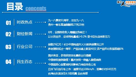每日新闻速递 2022年9月19日 星期一 目录 时政热点 财经新闻 行业公司 民生百态 九一八事变91周年,勿忘九一八 贵州一客车高速侧翻致27死20伤 8月,全国税收收入增幅由负转正! 以太坊合并,全球用电量减少0.2% 显卡巨头迎来新压力 保额29亿元!长沙中国电信失火大楼承保情况公开 养老理财试点一周年:产品加速上新至48只 多产品年化收益率超6% 国庆将至,多地疾控发布最新出行提醒 中国惊现首例猴痘!重庆发现一例输入猴痘病例 中国医院心血管病科技影响力综合排名公布 日本飞行自行车上市:速度可达100km/h,预售价约540万元 台湾台东县发生6.5级地震 全台有感 时政热点 九一八事变91周年,勿忘九一八 2022-09-18 08:00 来源:新华社 91年前的今天,记忆着血与火,这是刻在中华民族心口上的一道伤疤。庄严的残历碑静静矗立,无声诉说着这个民族的巨大苦难,刺耳的警报声划破天际,宣示着这个民族的铮铮誓言,中国人民永不忘记! 1931年9月18日,日军炸毁沈阳柳条湖附近南满铁路路轨,反诬中国军队所为。随后炮轰东北军北大营悍然发动九一八事变,开始了蓄谋已久的侵华战争。 贵州一客车高速侧翻致27死20伤 2022年09月18日14:19 来源:新华网 据贵州黔南州三都县公安局通报, 9月18日凌晨,黔南州三(都)荔(波)高速(贵阳往荔波方向)发生一起客车侧翻事故。事发时,车上载有47人。截至18日12时,事故造成27人不幸遇难,20人受伤正在救治。有关部门已紧急赶往现场处置。