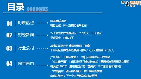 每日新闻速递 2022年11月29日 星期二 目录 时政热点 财经新闻 行业公司 民生百态 热点 国考笔试延期 明日出征,神十五乘组名单公布 27个省会城市规模划分:2个超大、10个特大 见证历史!首单来了 28省133款产品 惠民保最新“画像” 十年间企业养老保险参保人数从8.7万人增加到12.3万人 广州两区:长期居家老人、每日网课学生可不做核酸 “史上最严重”!超5230万只禽类被宰杀!美国禽流感疫情仍在蔓延 树龄超1300年!贵州黔西发现“国保级”千年古树名木乌柿树 “试管婴儿”费用能报销了!杭州明年起实施 南非实验室:下一个变异株致病性或更强 时政热点 国考笔试延期 2022-11-28 10:52 来源:澎湃新闻 国家公务员局网站11月28日发布消息,根据当前新冠肺炎疫情情况和防控工作需要,为保障广大考生健康安全,经研究,原计划于12月3日、4日举行的中央机关及其直属机构2023年度考试录用公务员笔试延期举行,具体时间另行通知。感谢广大考生的理解与支持! 明日出征,神十五乘组名单公布 2022-11-28 15:06 来源:澎湃新闻 经任务总指挥部研究决定,瞄准北京时间11月29日23时08分时分发射神舟十五号载人飞船。 飞行乘组由航天员费俊龙、邓清明、张陆组成,费俊龙担任指令长。