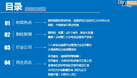 每日新闻速递 2022年12月21日 星期三 目录 时政热点 财经新闻 行业公司 民生百态 国务院联防联控机制:我国多地已发现BQ.1和XBB分支 明起,中俄将举行联合军演 国务院:同意!这6个城市,将迎大机遇 重磅!全球第二大水电站全部投产发电! 个人养老金信息平台管理办法征求意见 水滴保推出白血病复发险 多地宣布:退烧药拆零销售! 多地宣布:无症状和轻症者可正常上班 香港特区政府取消农历新年烟花汇演 300元天价电影票拉垮《阿凡达2》 假酒中毒!已致84人死亡 时政热点 国务院联防联控机制:我国多地已发现BQ.1和XBB分支 2022-12-20 11:51 来源:成都商报 国务院联防联控机制12月20日召开新闻发布会,会上中国疾控中心病毒病所所长许文波表示, BQ.1和XBB是奥密克戎新的变异分支。国际上,在一些欧美国家已经逐渐显示出,它们是优势毒株,主要表现为传播力和免疫逃逸能力增加。但其致病力和奥密克戎其他系列变异株没有明显区别,重症率和死亡率在流行BQ.1和XBB的这些国家没有显著增加。 明起,中俄将举行联合军演 2022-12-20 14:24 来源:上海证券报 据俄罗斯卫星社网站12月19日报道,俄罗斯国防部表示,俄太平洋舰队的一支舰艇分队已从符拉迪沃斯托克出海,参加将于12月21日至27日在中国东海海域举行的中俄海军联合演习——“海上联合-2022”。 据悉,此次演习的主要目的是加强俄罗斯和中国的海军合作,维护亚太地区的和平与稳定。