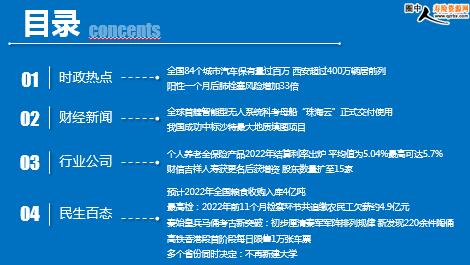 每日新闻速递 2023年1月13日 星期五 目录 时政热点 财经新闻 行业公司 民生百态 全国84个城市汽车保有量过百万 西安超过400万辆居前列 阳性一个月后肺栓塞风险增加33倍 全球首艘智能型无人系统科考母船“珠海云”正式交付使用 我国成功中标沙特最大地质填图项目 个人养老金保险产品2022年结算利率出炉 平均值为5.04%最高可达5.7% 财信吉祥人寿获更名后获增资 股东数量扩至15家 预计2022年全国粮食收购入库4亿吨 最高检:2022年前11个月检察环节共追缴农民工欠薪约4.9亿元 秦始皇兵马俑考古新突破:初步厘清秦军军阵排列规律 新发现220余件陶俑 高铁香港段首阶段每日限售1万张车票 多个省份同时决定:不再新建大学 时政热点 全国84个城市汽车保有量过百万 西安超过400万辆居前列 2023-01-12 11:59 来源:陕西网 全国有84个城市的汽车保有量超过百万辆,同比增加5个城市,39个城市超200万辆,21个城市超300万辆,其中北京、成都、重庆、上海超过500万辆,苏州、郑州、西安、武汉超过400万辆,深圳、东莞、天津等13个城市超过300万辆。 截至2022年底,全国公安交管部门共办理机动车转让登记业务3027万笔。其中,汽车转移登记业务2869万笔,占94.80%。近五年二手汽车转让登记量超过新车注册登记量。2022年,全国网上办理补换领驾驶证行驶证、发放临时号牌等业务9616万次,比2021年增加466万次,增长5.09%。 阳性一个月后肺栓塞风险增加33倍 2023-01-12 09:27 来源:福建日报 研究人员发现,感染者在确诊新冠30天后,肺栓塞风险增加了33倍,深静脉血栓形成的风险也增加了5倍,一般性出血事件风险增加了2倍左右。与未感染新冠的人相比,出血风险升高将持续2个月,深静脉血栓形成风险升高持续3个月,肺栓塞风险升高持续半年。 2022年8月美国医学会杂志发表相关研究显示:新冠住院患者发生深静脉血栓的风险比流感住院患者高60%-89%。新冠病毒感染会引起凝血功能障碍是静脉血栓形成的原因之一。急性肺栓塞是住院和死亡的主要因素。因此,如何及时发现和预防深静脉血栓形成及肺动脉栓塞是在新冠大流行期间,尤为重要的事情。