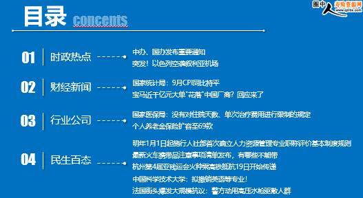每日新闻速递 2023年10月14日星期六 目录 时政热点 财经新闻 行业公司 民生百态 中办、国办发布重要通知 突发!以色列空袭叙利亚机场 国家统计局:9月CPI同比持平 宝马近千亿元大单"花落"中国厂商?回应来了 国家医保局:没有对住院天数、单次治疗费用进行限制的规定 个人养老金保险扩容至69款 明年1月1日起施行人社部首次确立人力资源管理专业职称评价基本制度规则 最新火车携带品注意事项清单发布,有哪些不能带 杭州第4届亚残运会火种乘高铁抵杭19日开始传递 中国科学技术大学:拟撤销英语等专业! 法国街头爆发大规模抗议:警方动用高压水枪驱散人群 时政热点 中办、国办发布重要通知 2023-10-13 09:51 来源:澎湃新闻 据中国机构编制网12日消息,中共中央办公厅、国务院办公厅发布调整相关国务院组成部门、直属事业单位职责机构编制的通知,涉及工业和信息化部、生态环境部、国家卫生健康委员会、中国人民银行、中国社会科学院等。 突发!以色列空袭叙利亚机场 2023年10月12日 15:00 来源:澎湃新闻 据叙利亚媒体“沙姆电台”报道,当地时间12日,以色列空袭叙利亚大马士革国际机场与阿勒颇机场,损坏机场跑道,导致这两个机场瘫痪。