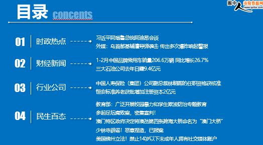每日新闻速递 2024年3月27日 星期三 目录 时政热点 财经新闻 行业公司 习近平同瑙鲁总统阿迪昂会谈 外媒:乌首都基辅遭导弹袭击 传出多次爆炸响起警报 1-2月中国品牌乘用车销量206.6万辆 同比增长26.7% 三大石油公司去年日赚9.4亿元 中国人寿保险(集团)公司副总裁林朝晖的任职资格获核准 恒安标准养老获批增加注册资本2亿元 教育部:广泛开展校园暴力和学生欺凌防治专题教育 多起足坛腐败案,密集宣判! 澳门特区政府决定将澳氹第四条跨海大桥命名为“澳门大桥” 少林寺辟谣!恶意捏造,已报案 美国佛州立法!禁止14岁以下未成年人拥有社交媒体账户 时政热点 习近平同瑙鲁总统阿迪昂会谈 2024-03-25 20:19 来源:央视新闻 3月25日下午,国家主席习近平在人民大会堂同来华进行国事访问的瑙鲁总统阿迪昂举行会谈。 习近平指出,今年1月,瑙鲁作出坚持一个中国原则、同中国复交的政治决断,这是符合历史大势、顺应时代潮流之举。友好不分先后,只要开启,就会有光明前途。合作不论大小,只要真诚,就会有丰硕成果。中瑙关系已经翻开新的历史篇章。中方愿同瑙方一道,开创中瑙关系的美好未来,更好造福两国人民。 外媒:乌首都基辅遭导弹袭击 传出多次爆炸响起警报 2024-03-25 20:52 来源:环球时报 当地时间25日,乌克兰首都基辅遭到导弹袭击,造成5人受伤。 法新社记者称,当天上午10点30分左右,在基辅听到了多次爆炸声,响起了空袭警报,当地官员敦促居民躲藏避难。 基辅军事行政长官谢尔盖·波普科表示,俄军从克里米亚向基辅发射了两枚导弹,这是五天内对基辅发动的第三次空袭。他表示,两枚导弹都被击落,但坠落的碎片落在中心地区,损坏了两座建筑物。 俄方对此消息暂无回应。