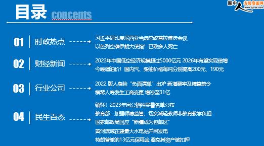 每日新闻速递 2024年4月3日 星期三 目录 时政热点 财经新闻 行业公司 习近平同印度尼西亚当选总统普拉博沃会谈 以色列空袭伊朗大使馆!已致多人死亡 2023年中国低空经济规模超过5000亿元 2026年有望实现倍增 今晚调油价!国内汽、柴油价格每吨分别提高200元、190元 2022 版人身险“负面清单”出炉 新增费率及精算禁令 横琴人寿发生工商变更 增资至31亿 缅怀!2023年因公牺牲民警名单公布 教育部:加强师德监管,切实减轻教师非教育教学负担 国家邮政局回应“新疆成为包邮区” 黄河流域在建最大水电站并网发电 特朗普缴纳13亿元保释金 避免其资产被扣押 时政热点 习近平同印度尼西亚当选总统普拉博沃会谈 2024-04-01 17:37 来源:湖南日报 4月1日下午,国家主席习近平在北京人民大会堂同印尼当选总统普拉博沃举行会谈。 习近平祝贺普拉博沃当选印尼总统,并请其转达对佐科总统的诚挚问候和良好祝愿。习近平指出,过去10年,我和佐科总统共同引领两国关系全面快速发展,取得沉甸甸的成果,雅万高铁成为两国高质量合作的金字招牌,中印尼关系进入共建命运共同体的新阶段。中方从战略高度和长远角度看待中印尼关系,愿同印尼深化全方位战略合作,构建具有地区和全球影响力的中印尼命运共同体,为两国人民带来更多福祉,为地区和世界和平、稳定、繁荣作出积极贡献。 以色列空袭伊朗大使馆!已致多人死亡 2024-04-02 09:19 来源:封面新闻 据央视援引伊朗国家电视台消息,伊朗伊斯兰革命卫队公共关系部门当地时间4月1日表示,当天以色列对伊朗驻叙利亚大使馆领事处大楼的空袭造成7名伊朗军事人员死亡,其中包括伊朗伊斯兰革命卫队“圣城旅”指挥官穆罕默德·礼萨·扎赫迪和穆罕默德·哈迪·哈吉·拉希米。