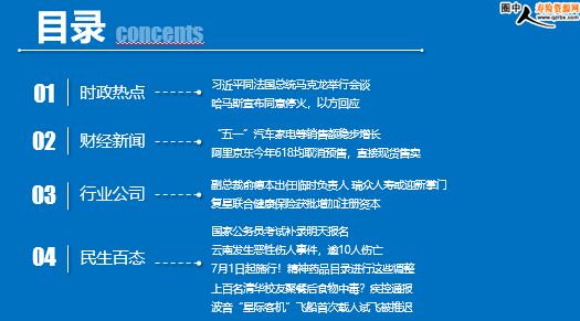 每日新闻速递 2024年5月8日 星期三 目录 时政热点 财经新闻 行业公司 习近平同法国总统马克龙举行会谈 哈马斯宣布同意停火,以方回应 “五一”汽车家电等销售额稳步增长 阿里京东今年618均取消预售,直接现货售卖 副总裁俞德本出任临时负责人 瑞众人寿或迎新掌门 复星联合健康保险获批增加注册资本 国家公务员考试补录明天报名 云南发生恶性伤人事件,逾10人伤亡 7月1日起施行!精神药品目录进行这些调整 上百名清华校友聚餐后食物中毒?疾控通报 波音“星际客机”飞船首次载人试飞被推迟 时政热点 习近平同法国总统马克龙举行会谈 2024-05-07 06:50 来源:人民日报 当地时间5月6日下午,国家主席习近平在巴黎爱丽舍宫同法国总统马克龙举行会谈。 习近平指出,很高兴在中法建交60周年之际对法国进行第三次国事访问。中法关系60年珍贵历程,将使我们更好思考如何开启下一个60年。在当前世界百年变局下,双方应该坚守独立自主、相互理解、高瞻远瞩、互利共赢的建交初心,并为其注入新的时代内涵,打造新时期互信稳定、守正创新、担当作为的中法关系。双方要坚持独立自主,共同防止“新冷战”或阵营对抗;要坚持相互理解,共同促进多彩世界的和谐共处;要坚持高瞻远瞩,共同推动平等有序的世界多极化;要坚持互利共赢,共同反对“脱钩断链”。 双方发表关于中东局势、人工智能和全球治理、生物多样性与海洋、农业交流与合作4份联合声明,签署绿色发展、航空、农业食品、商务、人文等领域近20项双边合作文件。 哈马斯宣布同意停火,以方回应 2024-05-07 09:49 来源:澎湃新闻 新华社加沙5月6日消息,巴勒斯坦伊斯兰抵抗运动(哈马斯)6日发表声明,宣布同意斡旋方提出的加沙地带停火提议。 声明说,哈马斯政治局领导人哈尼亚当天在电话中分别向卡塔尔首相穆罕默德和埃及情报总局局长阿巴斯·卡迈勒通报了这一决定。 以色列国防军发言人哈加里当天发表声明说,哈马斯接受了埃及斡旋的停火提议。以方在非常认真地审查提议每一项内容,竭尽全力推进有关谈判和令被扣押人员获释的“每一种可能性”。与此同时,以军将继续在加沙地带的军事行动。