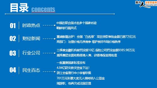 每日新闻速递 2025年10月12日 星期日 目录 时政热点 财经新闻 行业公司 民生百态 中国在联合国点名多个国家劣迹 朝鲜举行阅兵式 重磅数据出炉!全国“白名单”项目贷款审批金额已超7万亿元 两部门:治理价格无序竞争 维护良好市场价格秩序 三季度金融机构被罚没超10亿 保险公司罚没金额9385.98万元 越秀集团全面收购香港人寿,获香港保监局批准 一批重要国家标准发布 4.84亿防灾救灾资金下达! 浙江全省推行中小学春秋假 701万元彩票大奖无人领将纳入公益金 刚辞职,他再次成法国总理 时政热点 中国在联合国点名多个国家劣迹 2025年10月11日 11:25 来源:财联社 据央视新闻消息,在第80届联合国大会第三委员会一般性辩论环节,中国常驻联合国副代表孙磊大使针对英国、澳大利亚、加拿大、捷克、爱尔兰、荷兰、日本、欧盟代表团的发言行使答辩权。 孙磊大使指出,这几个代表团再次滥用联大三委平台,借涉疆、涉港、涉藏等问题抹黑中方,干扰国际人权对话合作,中方对此强烈不满、坚决反对。中国反对将人权问题政治化、武器化,反对以人权为借口干涉别国内政。要求相关国家停止“麦克风外交”,停止混淆是非、摒弃双重标准,回到对话与合作的正确轨道上来。 朝鲜举行阅兵式 2025年10月10日 23:24 来源:环球网 朝鲜10月10日晚在平壤市中心的金日成广场举行盛大阅兵式,庆祝朝鲜劳动党成立80周年。