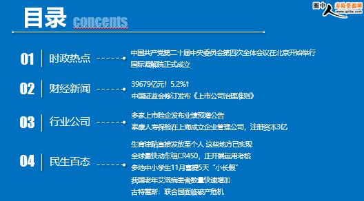 每日新闻速递 2025年10月21日 星期二 目录 时政热点 财经新闻 行业公司 民生百态 中国共产党第二十届中央委员会第四次全体会议在北京开始举行 国际调解院正式成立 39679亿元!5.2%↑ 中国证监会修订发布《上市公司治理准则》 多家上市险企发布业绩预增公告 泰康人寿保险在上海成立企业管理公司,注册资本3亿 生育津贴直接发放至个人 这些地方已实现 全球最快动车组CR450,正开展运用考核 多地中小学生11月喜提5天“小长假” 我国老年艾滋病患者数量快速增加 古特雷斯:联合国面临破产危机 时政热点 中国共产党第二十届中央委员会第四次全体会议在北京开始举行 2025年10月20日 12:49 来源:中国银行保险报 中国共产党第二十届中央委员会第四次全体会议20日上午在北京开始举行。中央委员会总书记习近平代表中央政治局向全会作工作报告,并就《中共中央关于制定国民经济和社会发展第十五个五年规划的建议(讨论稿)》向全会作了说明。 国际调解院正式成立 2025年10月20日 16:37 来源:环球网 2025年10月20日,国际调解院开业仪式在香港举行。30余个国际调解院公约缔约国和签署国以及香港特区各界近200名代表出席仪式。外交部副部长华春莹出席。 华春莹表示,短短5个月内,国际调解院实现了公约签署、生效和开业运营,速度之快在国际组织建设史上十分罕见,充分表明国际调解院顺应时代潮流,受到国际社会的广泛支持。国际调解院理念与全球治理倡议高度契合,奉行和解合作和谐,坚持公平公正公道,秉持共商共建共享,倡导以人为本,注重务实导向,将为构建人类命运共同体注入法治正能量,也将助力香港打造“调解之都”。欢迎更多国家积极加入,充分利用国际调解院为和平解决国际争端作出新贡献。