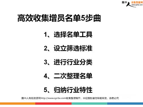 保险增员之高效收集增员名单五部曲(19页).ppt