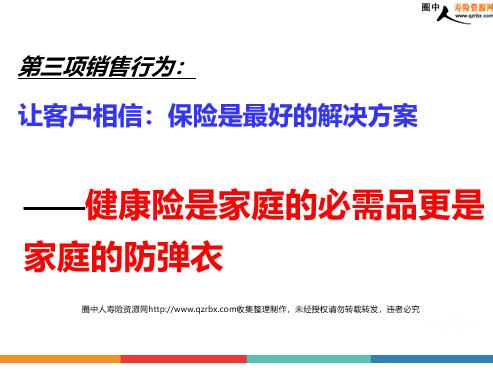 百万销售系统的八大要素 百万销售系统 要素一:成功信念 高度认同行业、公司、产品对荣誉: —X年X万:有荣誉,就去争(入围) —X年X万:一定要做第一!要素二:主顾开拓 1、准确定位客户群 X年X万:各行各业,高中低端,做个人保单 X年X万高级白领,中高端,做家庭保单 成功感悟:做万元件,做家庭保单,提高销售效率,是达成高目标的关键 回执转介绍:必须一直做现场转介绍主动转介绍:占保费50% 2、积累可供拜访的名单 3、建立合格名单的数据库 要素三:个性化的销售行为 人性、逻辑、产品三者的完美结合 如何高效完成四项销售行为,即高效成交? 第一项销售行为:让客户愿意接受你的拜访 只需3步 第1步:短信预约 业:李xx:您好!我是小夏,您看过5分钟打您电话方便吗?人性解读:你看过5分钟打您电话方便吗?一让客户一秒钟就对你有种好感,感觉你很有素质,很有修养 第2步:电话预约 业:李总,你好!我是xx的夏经理。我是你朋友xxx介绍的,听说你想了解一下保险。你看,你哪天方便,我们见个面,在不影响你工作的情况下,你看是明天还是后天?客:噢,我这两天没时间,我很忙业:噢,那没关系,你看星期五行吗?客:哦,到那天我们再联系业:噢,那没关系,我们暂时先定下周三吧,到时候有变我们再联系客:那好吧,到时我们再联系 人性解读: 听说你想了解一下保险 —千万不要说:你想买保险。这样客户往往会被你吓跑在不影响你工作的情况下 —这句话一定要说。让客户感到你很有素质,一切为客户着想噢,那没关系 —无论客户怎样拒绝,都先说这句话,再继续约定见面时间。柔中带刚我们暂定下周三吧 —一定要暂定见面时间,为第二步做铺垫 第3步:短信确认 时间:在周三上午发短信业:李总:你好!非常感谢你对我工作的支持与信任。上周我们约定本周三下午一点半见面,我会准时到