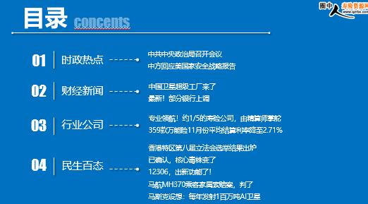 每日新闻速递 2025年12月9日 星期二 目录 时政热点 财经新闻 行业公司 民生百态 中共中央政治局召开会议 中方回应美国家安全战略报告 中国卫星超级工厂来了 最新!部分银行上调 专业领航!约1/5的寿险公司,由精算师掌舵 359款万能险11月份平均结算利率降至2.71% 香港特区第八届立法会选举结果出炉 已确认,核心毒株变了 12306,出新功能了! 马航MH370乘客家属索赔案,判了 马斯克设想:每年发射1百万吨AI卫星 时政热点 中共中央政治局召开会议 2025年12月8日 13:20 来源:财联社 据新华社,中共中央政治局12月8日召开会议,分析研究2026年经济工作,审议《中国共产党领导全面依法治国工作条例》。中共中央总书记习近平主持会议。 会议认为,今年是中国式现代化进程中具有重要意义的一年,以习近平同志为核心的党中央团结带领全党全国各族人民迎难而上、奋力拼搏,统筹国内国际两个大局,实施更加积极有为的宏观政策,经济社会发展主要目标将顺利实现。我国经济运行总体平稳、稳中有进,新质生产力稳步发展,改革开放迈出新步伐,重点领域风险化解取得积极进展,民生保障更加有力,社会大局保持稳定。过去5年,我们有效应对各种冲击挑战,我国经济、科技、国防等硬实力和文化、制度、外交等软实力明显提升,“十四五”即将圆满收官,第二个百年奋斗目标新征程实现良好开局。 中方回应美国家安全战略报告 2025年12月8日 16:20 来源:财联社 据澎湃新闻,12月8日,外交部发言人郭嘉昆主持例行记者会。 路透社记者提问,外交部对特朗普政府新发布的《国家安全战略》有何回应,该报告一方面称“美国不支持任何单方面改变台海现状的行为”,另一方面又提及“美国及其盟友阻止任何‘以武力夺取台湾’的企图能力。中方对此有何评论? 对此,郭嘉昆回应,我们注意到美国政府发表的《国家安全战略》报告。中方始终认为中美合则两利,斗则俱伤,相互尊重,和平共处,合作共赢是中美正确相处之道,也是唯一正确现实选择。中方愿同美方一道,推动中美关系继续保持稳定发展,同时坚定捍卫自身主权安全发展利益。