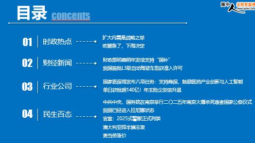 每日新闻速递 2025年12月16日 星期二 目录 时政热点 财经新闻 行业公司 民生百态 扩大内需是战略之举 欧盟急了,下周决定 财政部明确明年发债支持“国补” 我国首批L3级自动驾驶车型获准入许可 国家医保局发布八项任务:支持商保、鼓励医药产业创新与人工智能 单日获批超140亿!年末险企发债升温 中共中央、国务院在南京举行二〇二五年南京大屠杀死难者国家公祭仪式 我国已经进入拉尼娜状态 官宣:2025式警服正式列装 澳大利亚降半旗志哀 麦当劳涨价 时政热点 扩大内需是战略之举 2025年12月15日 15:05 来源:财联社 据央视新闻,12月16日出版的第24期《求是》杂志将发表中共中央总书记、国家主席、中央军委主席习近平的重要文章《扩大内需是战略之举》。这是习近平总书记2015年10月至2025年10月期间有关重要论述的节录。 文章指出,扩大内需既关系经济稳定,也关系经济安全,不是权宜之计,而是战略之举。实施扩大内需战略,是保持我国经济长期持续健康发展的需要,也是满足人民日益增长的美好生活的需要。要加快补上内需特别是消费短板,使内需成为拉动经济增长的主动力和稳定锚。 欧盟急了,下周决定 2025年12月14日 23:29 来源:环球网 德国《商报》网站12月12日发表文章说,欧盟正面临一项历史性决定:下周,各国领导人将在布鲁塞尔决定是否要将俄罗斯的央行资产用于乌克兰——并间接用于欧洲经济。 这项决定具有历史意义,因为俄罗斯总统普京和美国总统特朗普正酝酿瓜分欧洲。利用俄罗斯的资金是欧洲确保在谈判桌上占有一席之地的唯一筹码。 局势比几个月前更加明朗了。美国不再支持乌克兰,并敦促总统泽连斯基将国土割让给俄罗斯。特朗普和普京正在就北极地区的划分、欧洲原材料的获取,甚至可能包括欧洲向俄美基金支付赔偿金等问题进行谈判。