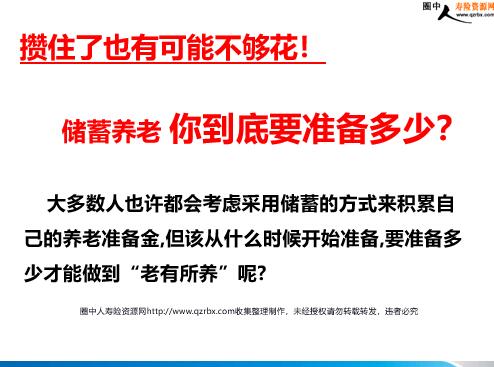 养老险理念之打破养老幻觉重视养老规划 养儿防老 这是一个横亘历史的古老词语,今天它依然富有生命力。现时的不确定感,对未来的恐惧感,加在一起,就汇化为通过养育儿女安享晚年了。 何谓“421家庭”?即一对独生子女结婚生子后,他们的家庭结构:4个父母长辈、他们2人和1个小孩。这种倒金字塔结构,实在让中间的“2”不堪其重。 中国的“421家庭” 而且,今天的人面临的竞争异乎以往,教育、医疗、住房这“新三座大山”已使他们气喘吁吁、举步维艰。 独生子女的沉重未来 “我是一个独生子,我曾有过世界上最幸福、最甜蜜的童年和少年时光,但有一天,我终于长大成人,我才意识到,过去所有的幸福只是预支的消费。当初,爷爷奶奶、爸爸妈妈四个人照顾我一个。以后,我一个人照顾四个,甚至更多。我们曾是最享福的孩子,但也将是最受苦的大人。等我们人到中年,将成为世界上活得最累的人。” 中国家庭基本进入421结构 随着“421家庭”的潮涌,希冀子女养老越来越不现实。何况,许多人连自己的福祉都谋取不到,他们有能力去让父母老有所养吗? 养儿防老:并不科学! ——理想和现实总是那么的遥远! 以房养老 “以房养老”作为一种新型的养老方式,最先出现在欧美等发达国家,我国在上世纪90年代已经开始出现这种养老方式,又称“住房反向抵押贷款”或者“倒按揭”。 老人可以将自己的产权房抵押给银行等金融机构,定期获得一定数额养老金,房主去世后,房产出售用于归还贷款,其升值部分归金融机构所有。 弊端: 1.有可能房子名义上是老人自己的,但实际上这个房子是全家的,拿这个钱来养老,可能儿孙还没房子,他不能随便去处置。 2.我国住宅用地的使用年限一般只有70年,当人老年迈将房产抵押时,商品房的使用年限已经不多,而当老人身故时,使用年限更是所剩无几。这也一定程度加大了对“以房养老”实施的难度。 弊端: 3.倒按揭存在一定风险,美国的次贷危机就是房子的事,出现了次贷危机以后,大家对房产肯定能够保值这个信心就没有了。所以,现在做以房养老的试点,金融机构可能还不太愿意做。这也是一个问题。 自己辛苦一辈子所买的房子,最后还要变成别人的,这是多数人所不能接受的 储蓄养老