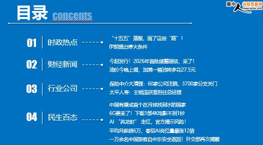 每日新闻速递 2026年3月11日 星期三 目录 时政热点 财经新闻 行业公司 民生百态 “十五五”蓝图,画了这些“路”! 伊朗提出停火条件 今起发行!2026年首批储蓄国债,来了! 油价今晚上调,加满一箱油将多花27.5元 保险中介大清理:60家公司注销,3700家分支关门 太平人寿:王旭泽获准担任总经理 中国有望成首个在月球找到水的国家 6G要来了!下载1部4K电影不到1秒 AI “养龙虾” 走红,官方提示风险! 平均月薪超6万,春招AI岗位量暴涨12倍 一万余名中国旅客自中东安全返回!外交部再次提醒 时政热点 “十五五”蓝图,画了这些“路”! 2026年3月10日 07:21 来源:央视新闻 “十五五”时期,我国将完善现代化综合交通运输体系,基本建成“八纵八横”高速铁路主通道和国家高速公路网,推进内河高等级航道提质升级,基本建成世界级港口群和机场群,将实施贯通高标准沿江高铁通道、建设三峡水运新通道、推进公路安全韧性提升等一批重大工程项目。一张图,带你了解。 伊朗提出停火条件 2026年3月10日 15:45 来源:中国银行保险报 据土耳其阿纳多卢通讯社3月10日报道,伊朗副外长卡泽姆·加里布阿巴迪3月9日表示,包括俄罗斯、法国在内的多个国家已就可能的停火事宜与德黑兰接触。 阿纳多卢通讯社援引伊朗学生通讯社报道称,加里布阿巴迪表示:“我们停火的首要条件是,不会再有进一步的侵略行为。” 加里布阿巴迪补充称,包括俄罗斯在内的多个国家已就推动实现停火与伊朗进行接触。 俄罗斯方面3月9日表示,俄罗斯总统普京与美国总统特朗普通电话讨论伊朗局势,普京就尽快结束围绕伊朗的战事提出建议。