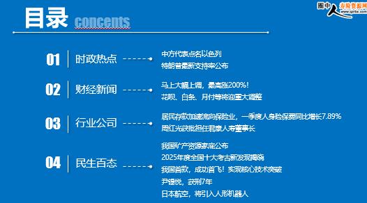 每日新闻速递 2026年4月30日 星期四 目录 时政热点 财经新闻 行业公司 民生百态 中方代表点名以色列 特朗普最新支持率公布 马上大幅上调,最高涨200%! 花呗、白条、月付等将迎重大调整 居民存款加速流向保险业,一季度人身险保费同比增长7.89% 周红光获批担任君康人寿董事长 我国矿产资源家底公布 2025年度全国十大考古新发现揭晓 我国首款,成功首飞!实现核心技术突破 尹锡悦,获刑7年 日本航空,将引入人形机器人 时政热点 中方代表点名以色列 2026年4月29日 16:33 来源:中国经济网 中国常驻联合国代表傅聪28日在安理会中东问题高级别公开辩论会上发言,敦促各方争取早日恢复中东和海湾地区稳定。他说,一段时间以来,中东局势急剧升温,影响持续扩散蔓延,严重冲击地区稳定,影响世界经济和能源安全。当前局势来到战和转换的关键阶段,中方呼吁各方抓住和平窗口,保持最大克制,拿出最大诚意,坚持政治解决方向不动摇,保持停火和谈判势头不倒退,争取早日恢复中东和海湾地区稳定。 特朗普最新支持率公布 2026年4月29日 09:33 来源:中国经济网 当地时间4月28日,一项路透社/益普索的最新民调显示,美国总统特朗普的支持率降至其本届任期新低,主要受到美国生活成本上升以及伊朗局势的影响。 这项为期四天的美国全国调查显示,仅有34%的美国人认可特朗普的执政表现,较4月中旬36%的支持率进一步下滑,也明显低于其2025年1月上任时47%的支持率。 民调显示,公众对经济问题不满情绪加剧。仅22%的受访者认可其在“生活成本”方面的表现,较此前25%的支持率继续下降。分析认为,美国与伊朗的冲突导致能源价格上涨,是推高通胀与民生成本的重要因素之一。 据悉,此次调查共收集1014名美国成年人的意见,误差范围约为±3个百分点。多数调查数据采集于白宫记者协会晚宴枪击事件发生之前。